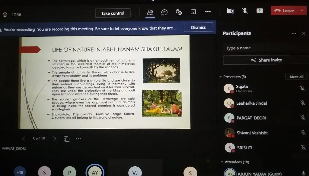 (Prof.) Dr. Shivani Vashist, HOD, Department of English started the session with a welcome note. The focus of the session was on the basics and importance of Natyashastra (theatre).